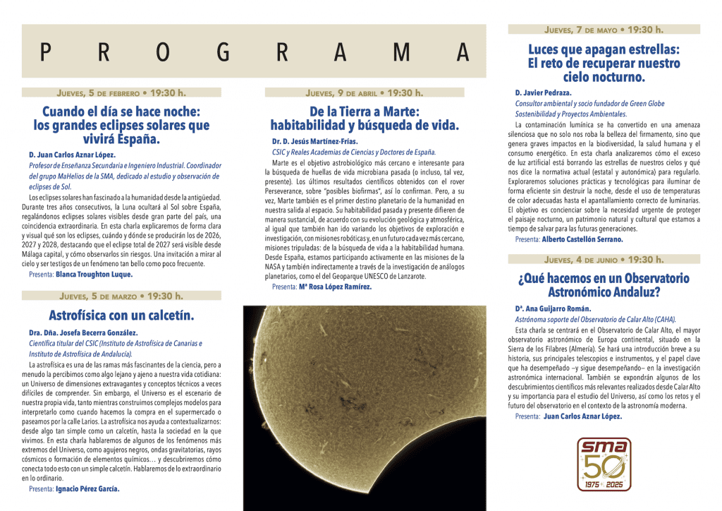 Un año más, os damos a conocer el programa de nuestro ciclo de conferencias divulgativas “Cita con las estrellas” que desde hace trece años convoca a numerosos interesados en la astronomía y ciencias afines.